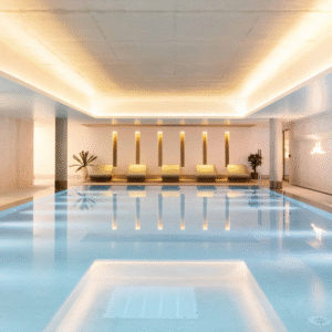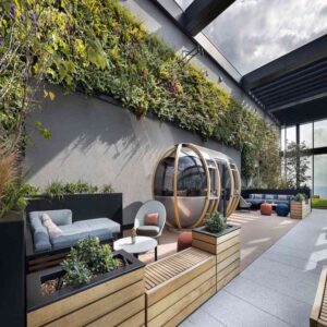 a river-view terrace, rooftop bar, private cinema and games room. The Renew floor, designed by Tom Dixon, offers fitness facilities and beautiful terrace views for rejuvenation.